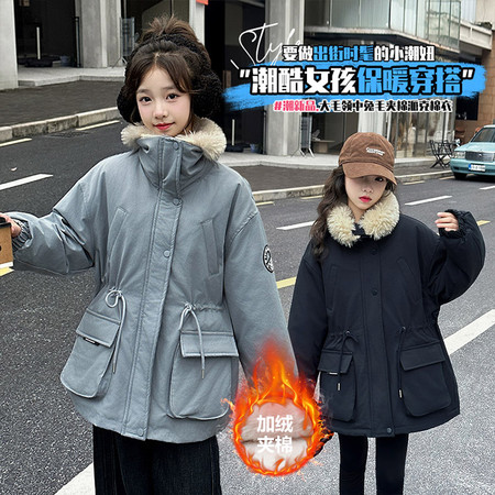 1*1收藏“大毛领中兔毛夹棉派克棉衣”